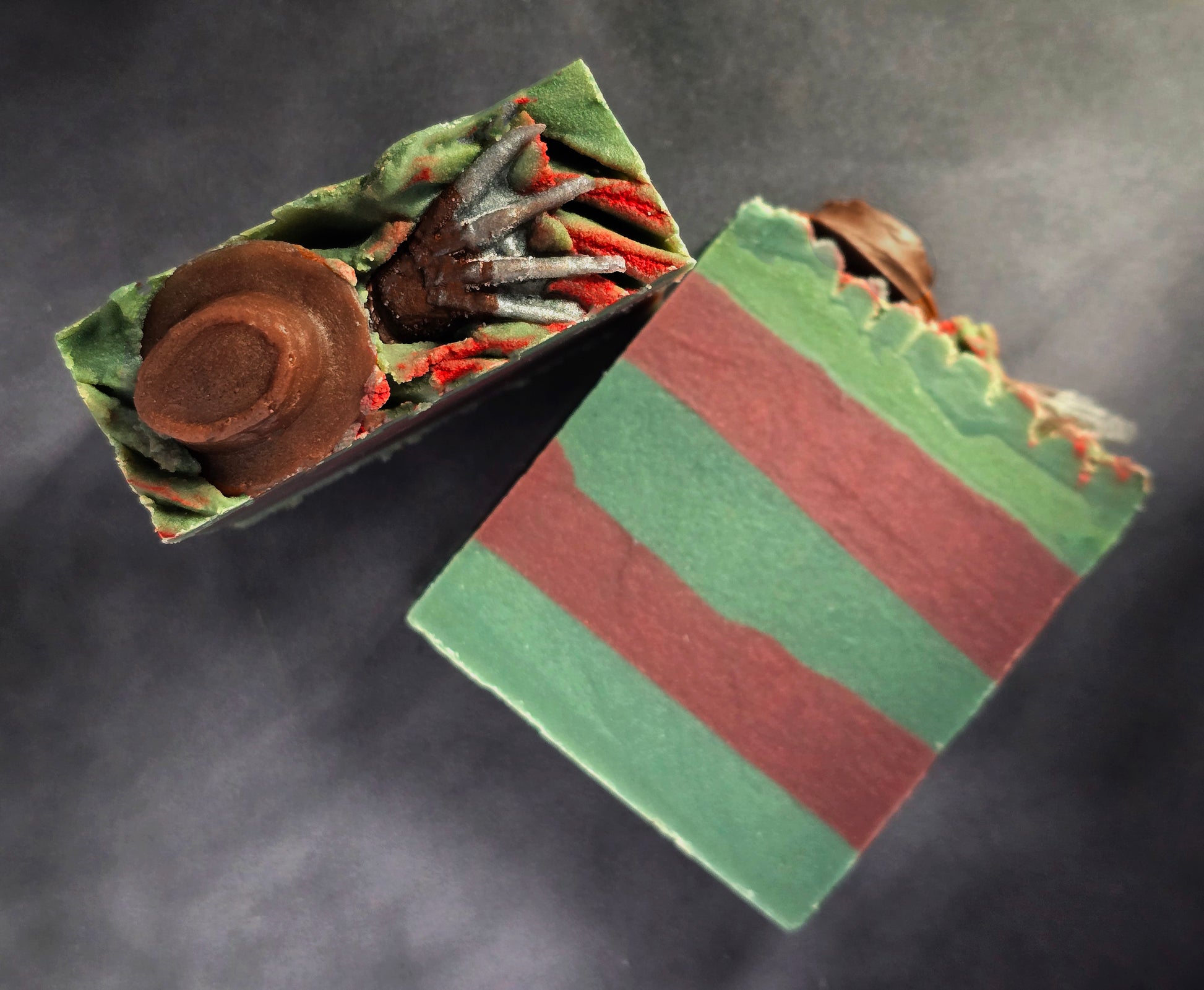 Sleep tight… if you dare. Man of Your Dreams Soap drags you straight into Freddy’s boiler room, where shadows flicker and steel hisses. The lather twists with the smoky bite of dark wood embers and lavender, grounded in earthy Patchouli, and finished with a sinister undercurrent of spiced amber. It is the dreamscape itself—beautiful, dangerous, and inescapable. With every wash, you’ll feel Freddy’s presence… waiting for you on the other side of sleep. 1......2.......Freddy's comin' for you.....